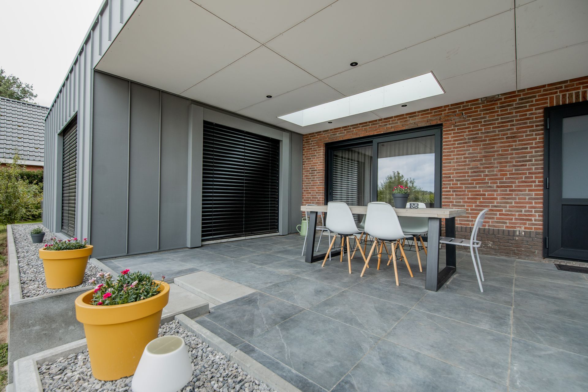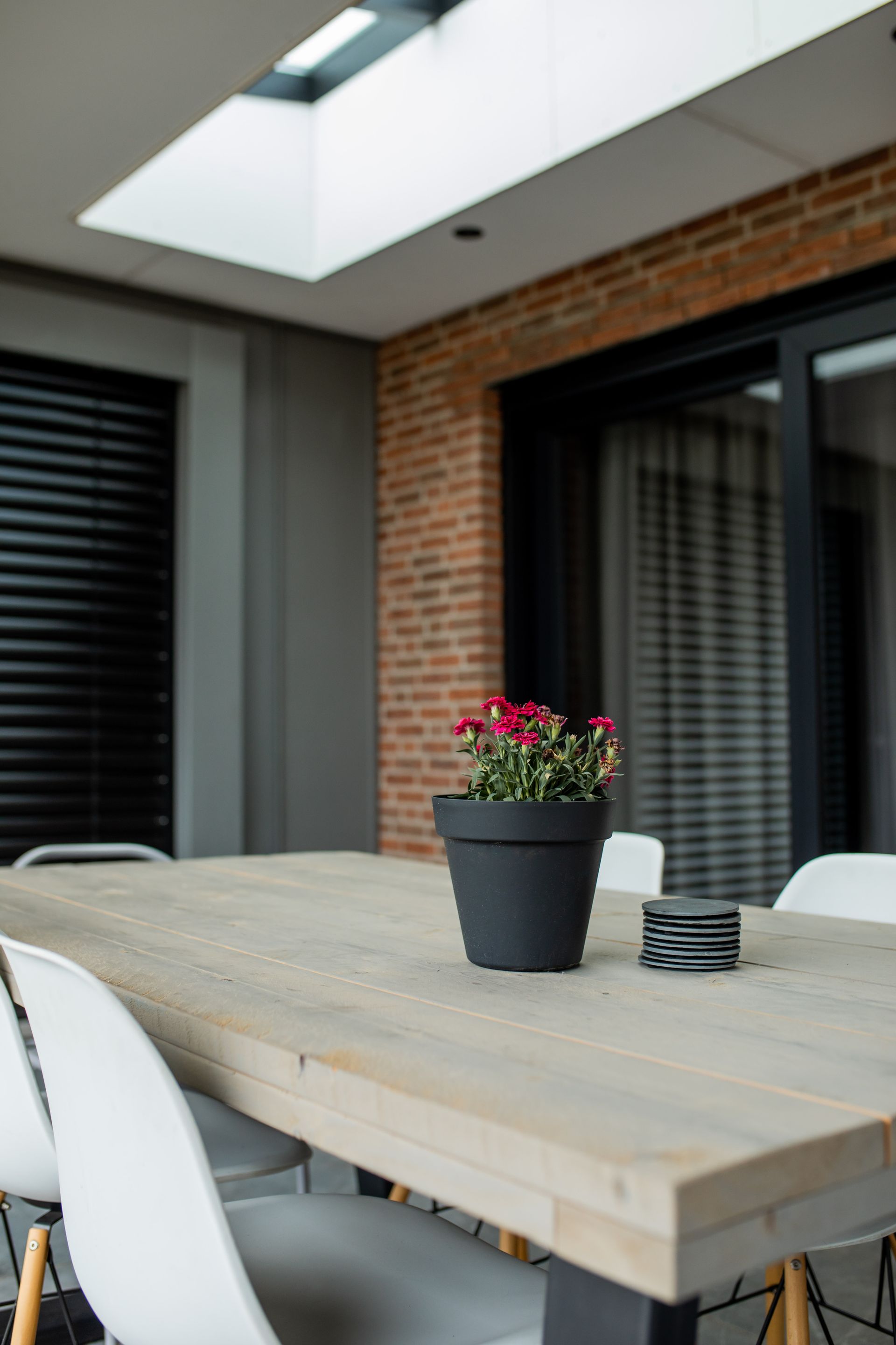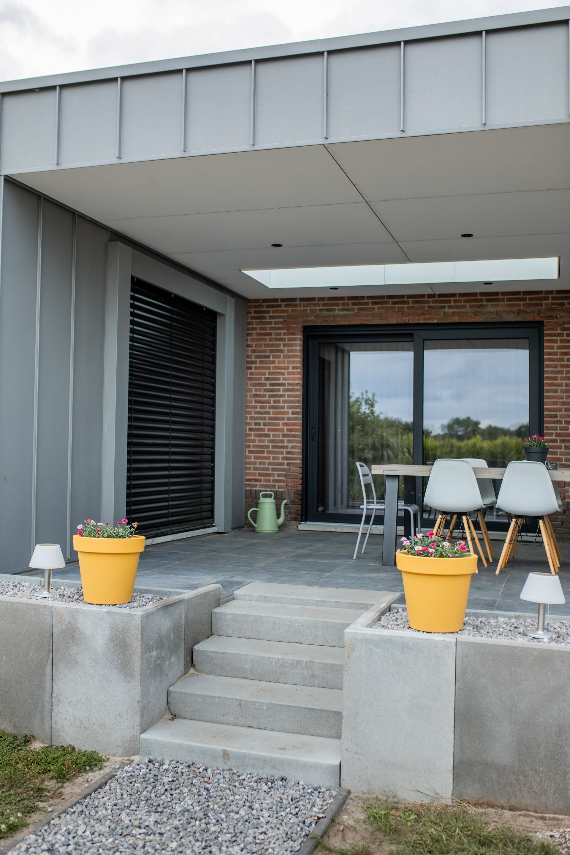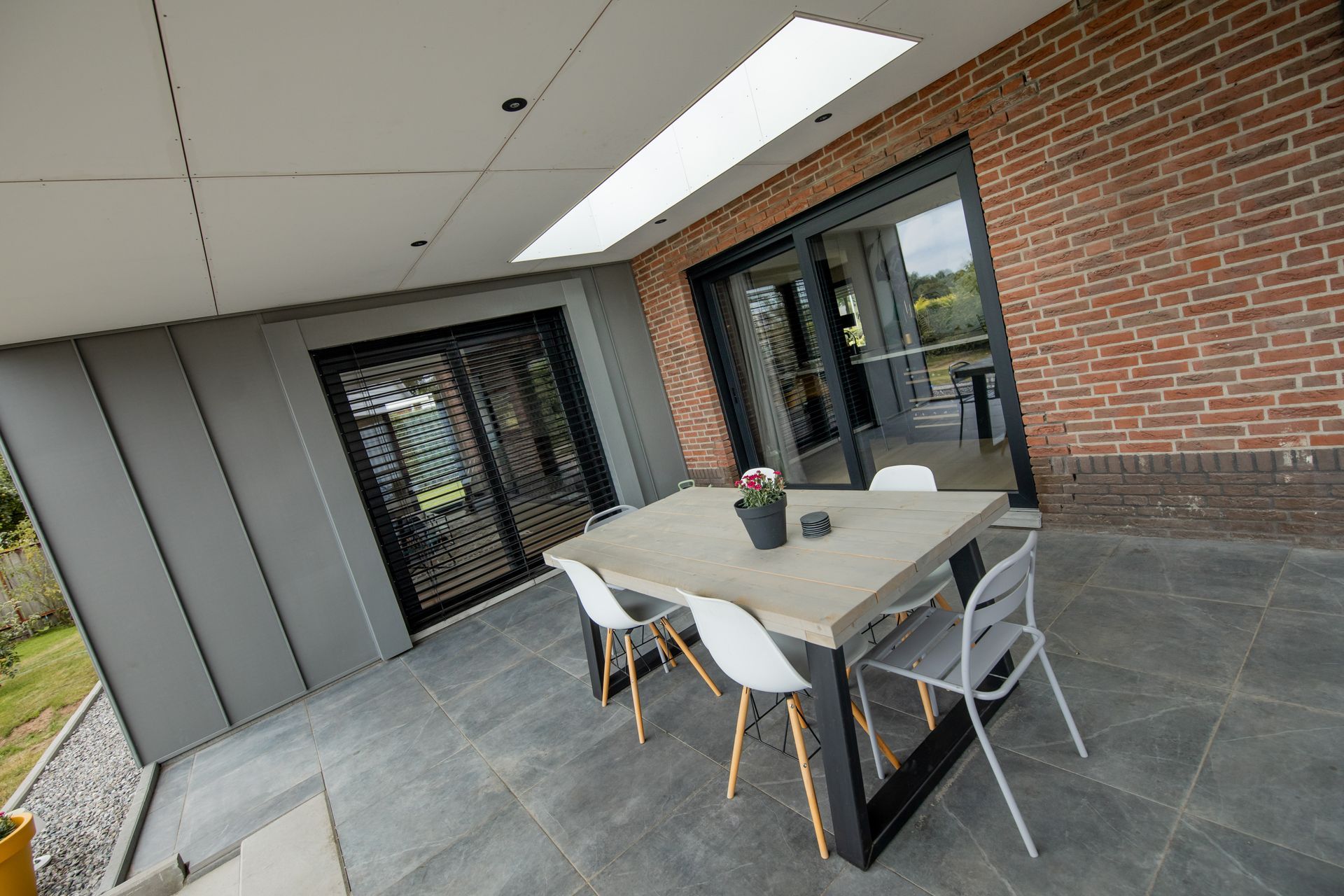 Interne verbouwing met aanbouw afgewerkt met zinken gevelbekleding.